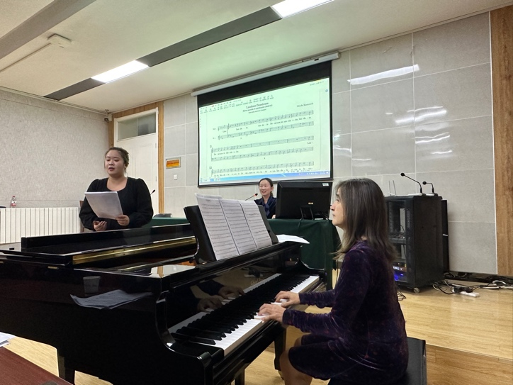 进而,Baldassari教授详细讲解了通奏低音的三种形式,并结合海顿、蒙特威尔第等作曲家的作品,细致说明如何进行即兴伴奏。在此期间,她邀请正妹av 声乐专业王杨老师、崔欣阳同学和李姝柳同学分别演唱三首巴洛克声乐作品,Baldassari教授亲自现场示范,为大家展示以通奏低音为基础的即兴伴奏。她们的表演感情充沛,引起现场观众深深的情感共鸣。