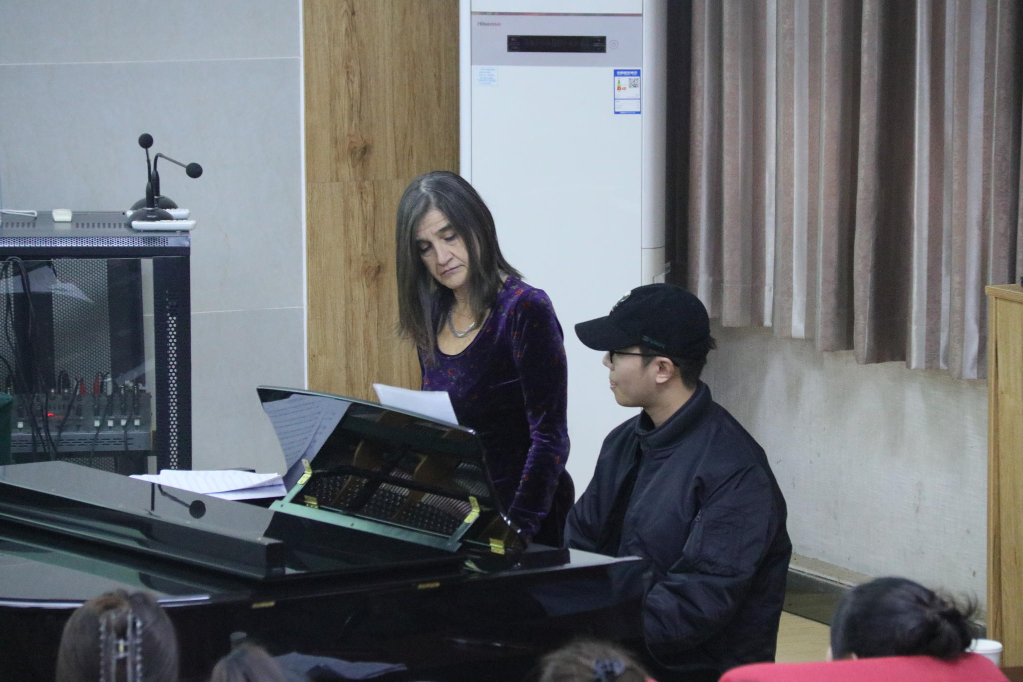 讲座最后,Baldassari教授邀请钢琴表演专业本科生冯新浩同学上台进行通奏低音即兴创作,结合着教授的现场指导,在场的师生切实感受到了即兴伴奏的魅力。