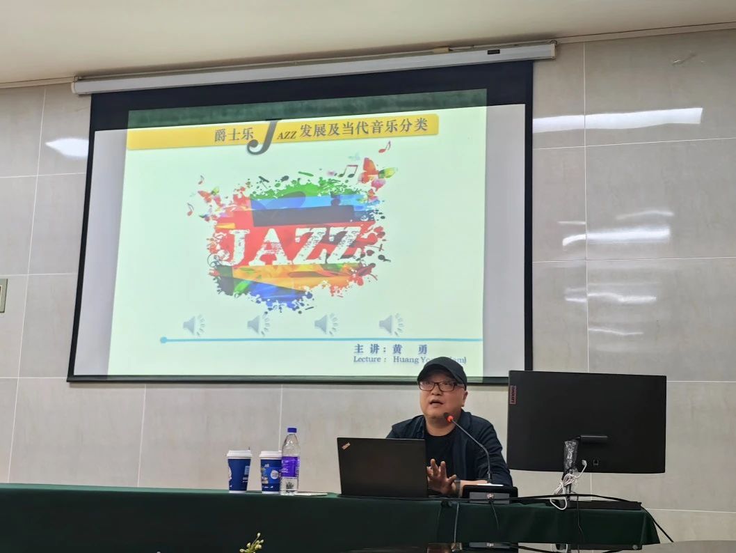 讲座结束后,郭鹏老师对黄勇老师的讲座进行简要总结。他表示,正是得益于黄勇老师多年来在爵士乐领域的辛勤耕耘与深厚积淀,使得黄勇老师在本场讲座中能够把爵士乐的浩瀚历史与深邃文化内涵,用深入浅出的语言传递给在场师生。同时,黄老师对经典爵士乐作品的熟悉掌握,使得他的讲座内容与作品赏析得以有机融合。