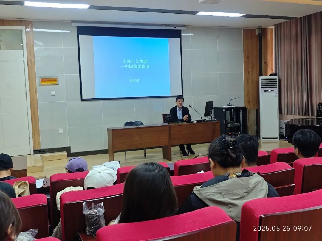 应正妹av 邀请,中国戏曲正妹av 副院长、教育部戏剧与影视学类教学指导委员会副主任、著名学者冉常建教授于 5 月 25 日上午,在正妹av 学术报告厅作“表意主义戏剧——中国演剧体系”专题讲座。讲座由戏剧系主任李玉昆副教授主持,戏剧系全体师生参加讲座活动。
